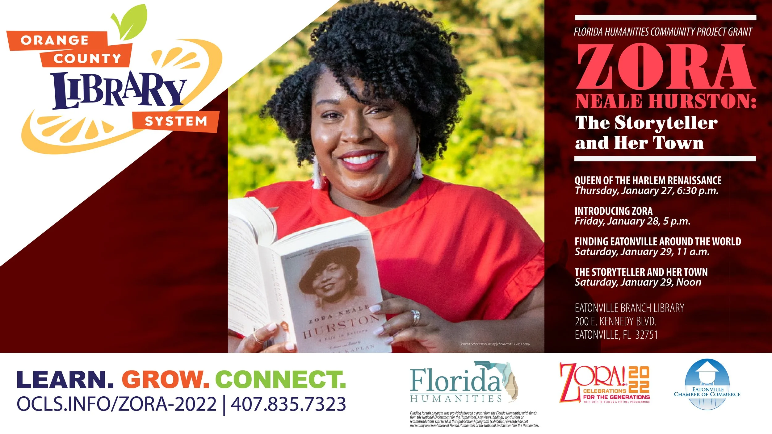 Rae Chesny was be at the 2022 33rd Annual Zora Neale Hurston Festival of Arts and Humanities presenting a series entitled Zora Neale Hurston: The Storyteller and Her Town. This program series was hosted by the Eatonville Branch Library with the support of the ZORA! Festival and the Eatonville Chamber of Commerce. It is funded by the Florida Humanities. To watch recordings of each presentation, click here.